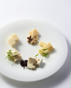 チーズの盛り合わせ 2025.10.15 料理 旬のチーズを少しずつ。 その日の仕入れで内容が変わる 「チーズの盛り合わせ」をご用意しております。 食後のひとときに、ワインとともに 秋の夜をゆったりとお過ごしください。